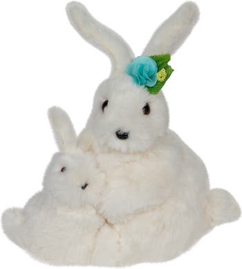 Plush Mother and Baby Easter Bunny Rabbit Spring Decoration - 10"