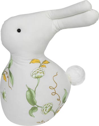 Create a charming seasonal display with this p soft floral rabbit in white, green, and yellow. Designed with delicate floral patterns and a cozy texture, this adorable bunny brings a warm and cheerful look to any Easter or spring décor. Ideal for mantels, shelves, or centerpieces, it complements a variety of seasonal themes with its soft color palette and whimsical design. Whether placed alone or as part of a larger arrangement, this rabbit figure captures the essence of springtime celebrations. Features: Rabbit features long straight ears and a pouf tail A soft floral pattern wraps gracefully around the rabbit's body The weighted bottom of this rabbit ensures stability Recommended for indoor use only Dimensions: 14"H x 8.5"W x 5"D Materials: fabric/PVC