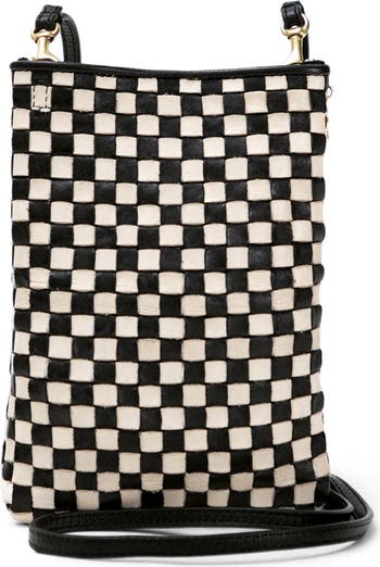 Colorblocked panels of leather are woven into this compact North/South crossbody bag featuring a detachable strap that enhances its versatility.