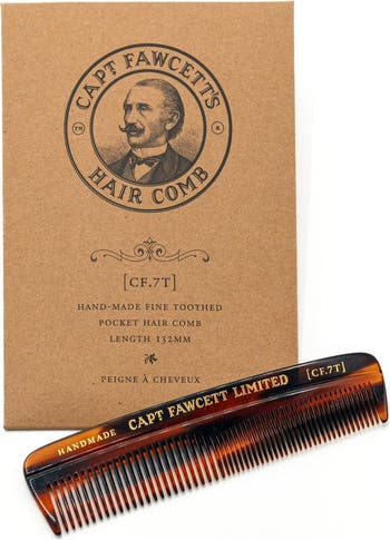 Captain Fawcett's delightfully hand-crafted fine toothed Hair Comb (CF.7T) is just the ticket for keeping wind-swept, wayward locks neat as a new pin. Huzzah! Keep one in your wash kit, pop one in your pocket, place on in your desk drawer. An indispensable aid for the grooming, maintenance & shaping of your prized barnet*.All Hail The HirsuteLength: 132mm