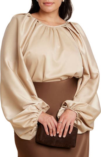 - sleeves and a gathered neckline elevate this blouse with poetic edge and powerful softness. Match yours back to dainty, gilded jewels.