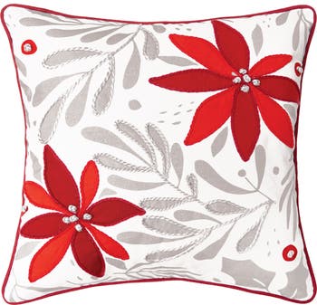 Poinsettia Christmas Printed & Embellished Throw Pillow