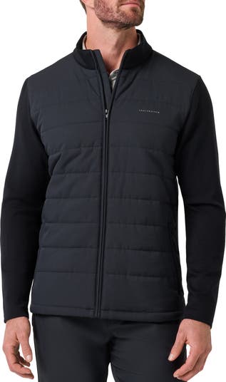 Achieve a two-piece look with one-and-done ease in a sporty jacket that features a quilted front combined with softly knit sleeves, back and mock-neck collar.