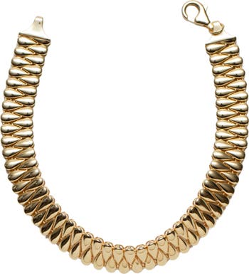 Dimensional teardrop links enhance the fluid shine of this layerable chain bracelet crafted from sterling silver and plated in warm 18-karat gold.