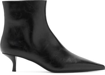 A center seam highlights the pointy toe of this endlessly versatile and refined bootie.