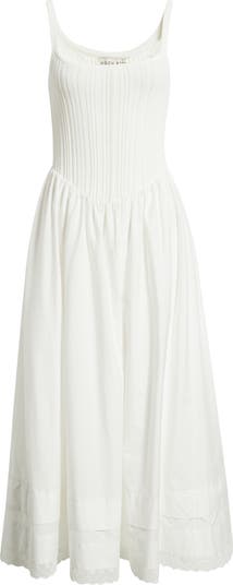 A pretty pointelle bodice gives way to a full skirt in a fresh white dress that's ready for summery days and warm nights.