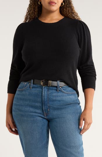 Made for mixing and matching across your closet, this versatile crewneck sweater with a hint of wool and cashmere leans on pleated shoulders for a touch of shape and airy pointelle stitches for fresh airflow so the feel stays easy all day.