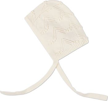 Protect your tot's delicate scalp and ears with this adorable baby bonnet. It's crafted for cozy comfort in 100% premium cotton, famous for soothing softness. Plus, it features an open-work pointelle pattern for texture and breathability. And it's finished with sturdy self-fabric straps for a snug, stay-put custom fit.