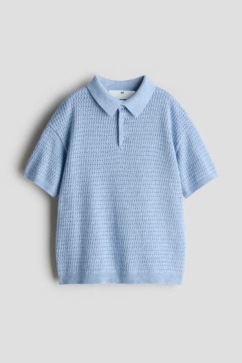 Polo shirt in soft, pointelle-knit cotton with a collar, button placket, dropped shoulders and short sleeves. Ribbing at the cuffs and hem.