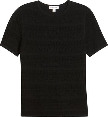 Delicate pointelle stitching brings airy texture to this short-sleeve crewneck sweater made for polished workdays to off-duty weekends.