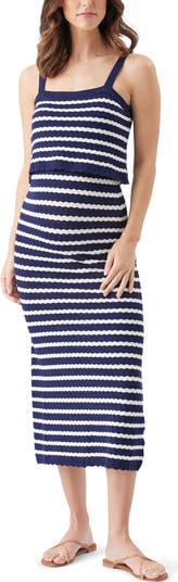 The Pointelle Knit Nursing Dress blends comfort with effortless style. Made from a soft, striped pointelle knit, it has a semi-fitted silhouette that feels as good as it looks. A straight neckline and adjustable straps add a refined touch, while the lift-up overlayer makes nursing easy and discreet. Wear it on its own for a breezy, warm-weather look - this is one of those pieces that’s simple, stylish, and thoughtfully designed for motherhood.
