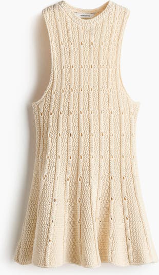 Fitted, sleeveless top in a structured pointelle knit with a crew neck and a flared peplum.