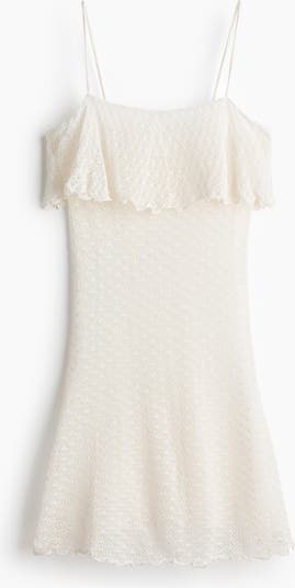 Long top in a sheer pointelle knit with overlocked edges. Features a square neckline, spaghetti shoulder straps, a loose double layer at the top, and a gently flared hem. Unlined.