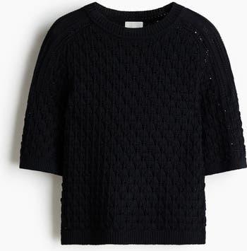 T-shirt in a soft pointelle knit with a round, rib-trimmed neckline and raglan sleeves that finish just above the elbows. Ribbing at the cuffs and hem.