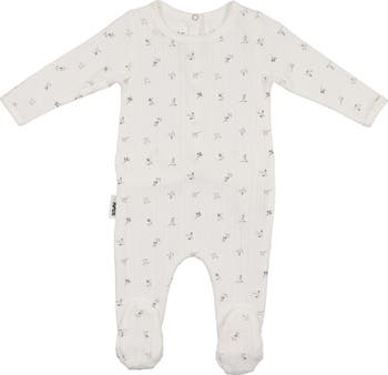 Leaves scatter across this pointelle-knit footie framed with long sleeves to give baby extra coverage.
