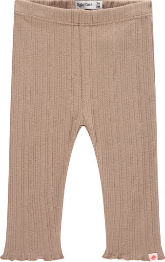 This chic pull-on legging features an allover delicate pointelle pattern, lettuce edge hems, and an elastic waistband.