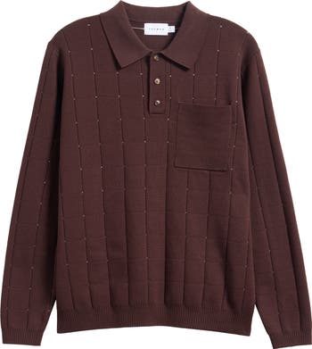 Pointelle stitches form a neat grid on this long-sleeve polo that adds modern style to work or weekend looks.