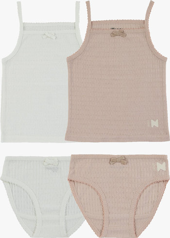 - Scalloped trim with bows on each garment