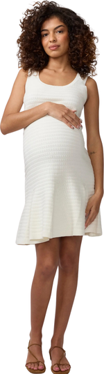 Light, feminine, and easy to wear, this pointelle sweater dress brings a softer side to knit dressing. Designed with a fitted tank silhouette up top, it gently flares into a swingy skirt finished with godet inserts for extra movement. Delicate pointelle texture adds depth and interest, while the ribbed scoop neckline and wide straps keep the look clean and wearable. Flirty without feeling precious, it’s made to move with you—comfortably and confidently.
