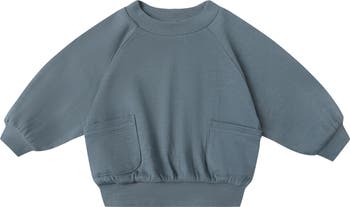 A pointelle knit of pure organic cotton textures an everyday sweatshirt finished with a pair of patch pockets that your acquisitive baby will find lots of uses for.