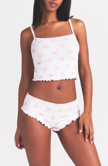 Slip into a matching set you'll adore. Designed in the brand's lightweight pointelle, these pajamas include a cropped scoop-neck camisole with adjustable straps, a lettuce-edge hem and a satin bow detail. The shorts feature a picot elastic waistband and ruffled leg openings.