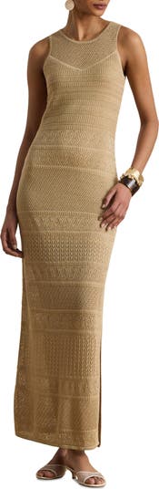Airy pointelle stitching enhances the breathable charm of this figure-skimming maxi finished with a leg-baring side slit.