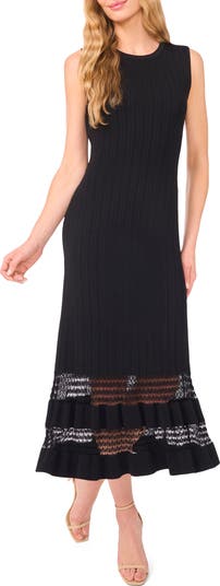 Pretty pointelle stitchwork lightens the look of a darling dress knit to a beloved and versatile midi length.