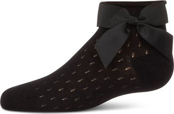 Oh-so-soft anklets finished with a tonal bow appliqué. Features a soft pointelle fabrication, comfortable seams, and a hand-linked toe.