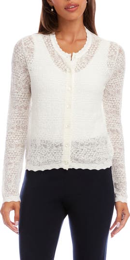 Intricate, eye-catching pointelle stitches bring dimension to this ultralightweight cotton-blend cardigan that's slightly sheer, making it perfect for layering.