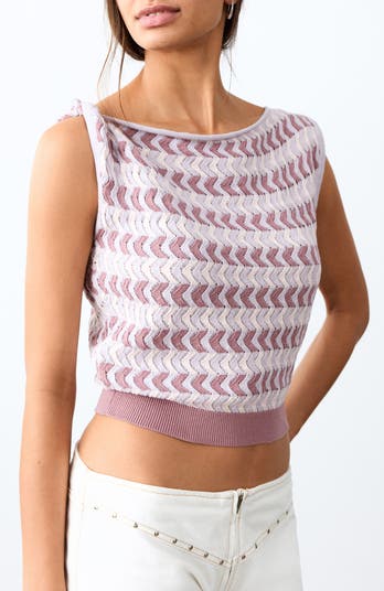 Textural pointelle knit brings airy dimension to this sleeveless crop top patterned with undulating stripes. A raw-edge bateau neckline lends an effortless feel, while a twist detail at one shoulder adds subtle sculptural interest.
