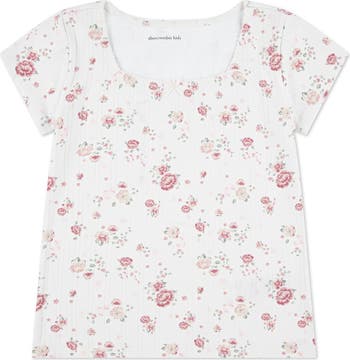 They'll love the delicate pointelle stitches that softly texture this square-neck T-shirt.
