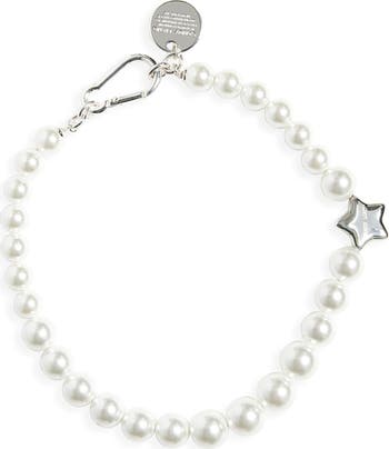 The NYC designer's whimsical vision is highlighted through this faux-pearl necklace detailed with a playful star-shaped charm, carabiner clasp and an 'If Found' tag.