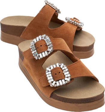 - Sleek double-strap design with thick sole for versatile summer styling