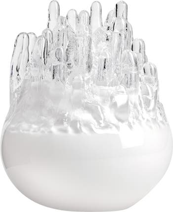Tendrils of crystal mimic rippling water frozen in time on this mouthblown piece that's equal parts votive holder and sculpture.