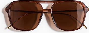 Aviator-style sunglasses with plastic frames and metal sidepieces. Tinted, UV-protective, polarised plastic lenses. Polarised lenses convey colours more clearly and provide stronger contrasts while preventing glare.