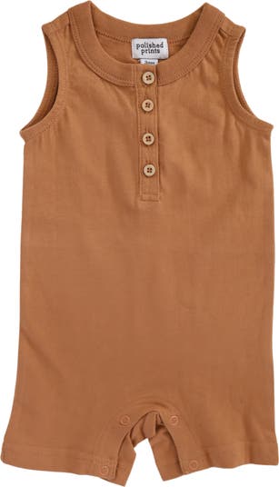 Your little one will be ready for playtime in this solid-hue sleeveless romper made from lightweight organic cotton.