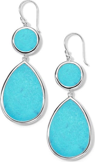 Glowing slices of turquoise are polished to a high gloss and placed in sterling silver settings to create these stunning drop earrings.