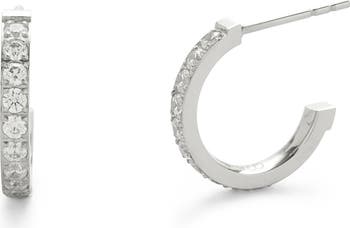 Pavé cubic zirconia add sparkle to the polished gleam of these hoop earrings crafted from sleek stainless steel.