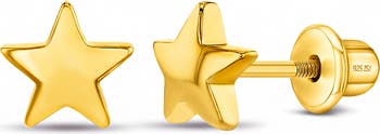 These little girls’ polished star shaped earrings are crafted from 14k gold over sterling silver, creating a timeless look. The smooth, polished star design offers a playful yet classic style, perfect for everyday wear. Designed with safety screw back closures, these earrings ensure a secure and comfortable fit for young ears. A charming accessory that adds a subtle sparkle to any outfit. A small gift box is included with purchase.