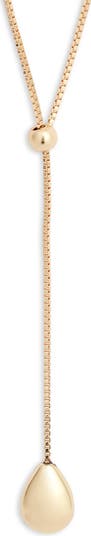A polished teardrop pendant serves as a stunning focal point for this adjustable and elegant Y necklace.
