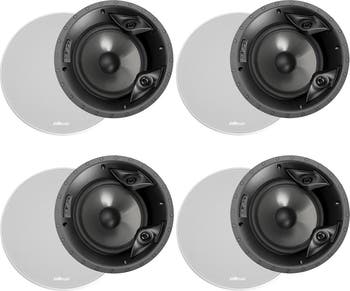 The Polk 80F/X-RT pair of in-ceiling surround-channel speakers fill your home theater with vibrant sound effects, while they are virtually indistinguishable from its surroundings. Each speaker is equipped with dual silk dome tweeters and a Dynamic Balance woofer that deliver incredibly detailed, clean sound with realistic imaging. Mounting the speakers is simple with a one-cut, drop-in installation and the rotating cam system secures them in place, ensuring vibration-free efficiency. They also feature a "Wall Distance" switch for flexible mounting that eliminates muddy bass response. Each speaker has a magnetic, acoustically inert, sheer-grille that provides dynamic, unimpeded sound and more uniform coverage, even in larger rooms.