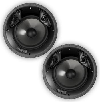 The Polk 80F/X-RT pair of in-ceiling surround-channel speakers fill your home theater with vibrant sound effects, while they are virtually indistinguishable from its surroundings. Each speaker is equipped with dual silk dome tweeters and a Dynamic Balance woofer that deliver incredibly detailed, clean sound with realistic imaging. Mounting the speakers is simple with a one-cut, drop-in installation and the rotating cam system secures them in place, ensuring vibration-free efficiency. They also feature a "Wall Distance" switch for flexible mounting that eliminates muddy bass response. Each speaker has a magnetic, acoustically inert, sheer-grille that provides dynamic, unimpeded sound and more uniform coverage, even in larger rooms.
