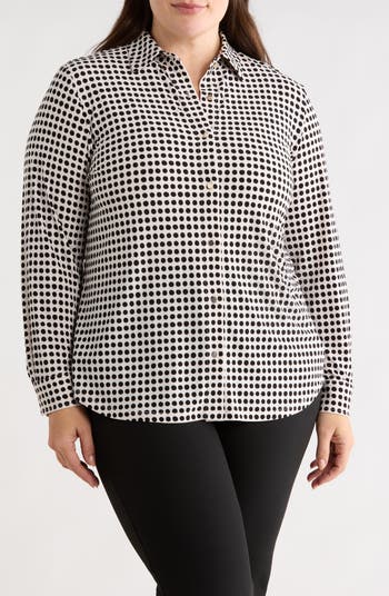 Bubbly polka dots punctuate this button-up shirt made from a lightweight stretch-enhance fabric in a fit that looks polished whether you tuck it in or wear it out.