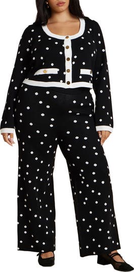 - Playfully printed & cut with a wide-leg fit, these polka-dot intarsia knit pants make a graphic statement anywhere you wear them. The pull-on, high-rise waist and soft stretch keep you chic & comfortable from desk to dinner.