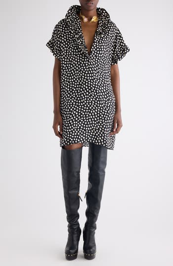 Creative Director Chemena Kamali channels the exuberance of the '80s in this ruffled silk crêpe de Chine minidress with a jacquard-woven polka dot pattern inspired by the era's graphic prints. Lustrous mother-of-pearl buttons add a refined finishing touch.