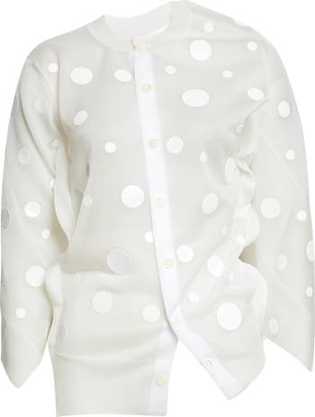 With its segmented neckline, mixed-scale polka dots and coolly slanted angles, this sheer cardigan evokes the boundary-pushing experimentation of Watanabe’s spring '26 collection, where ordinary objects become extraordinary art.