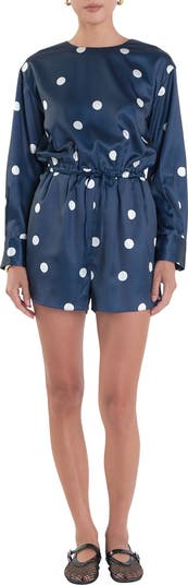 Polka Dot Long Sleeve Satin Romper