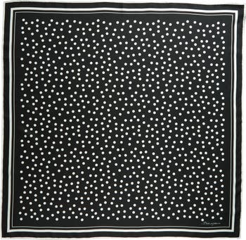 Sweet spots and a striped border define this silk scarf that's the perfect finishing touch for lots of looks.