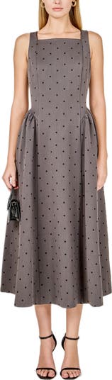 Be sweetly spotted in a darling dress designed with a romantically squared neckline for a look that works for fun and fancy.