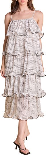 Rows of ruffles and delicate dots sweeten a party-perfect dress hung from slim straps.